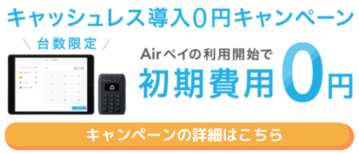 Airペイでは現在「キャッシュレス導入0円キャンペーン」が開催されています。